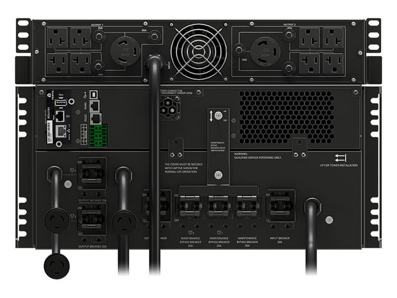 Integrated external maintenance bypass with the 5-10kVA models to support the load during planned maintenance or UPS upgrades and is available as an optional accessory for other models.